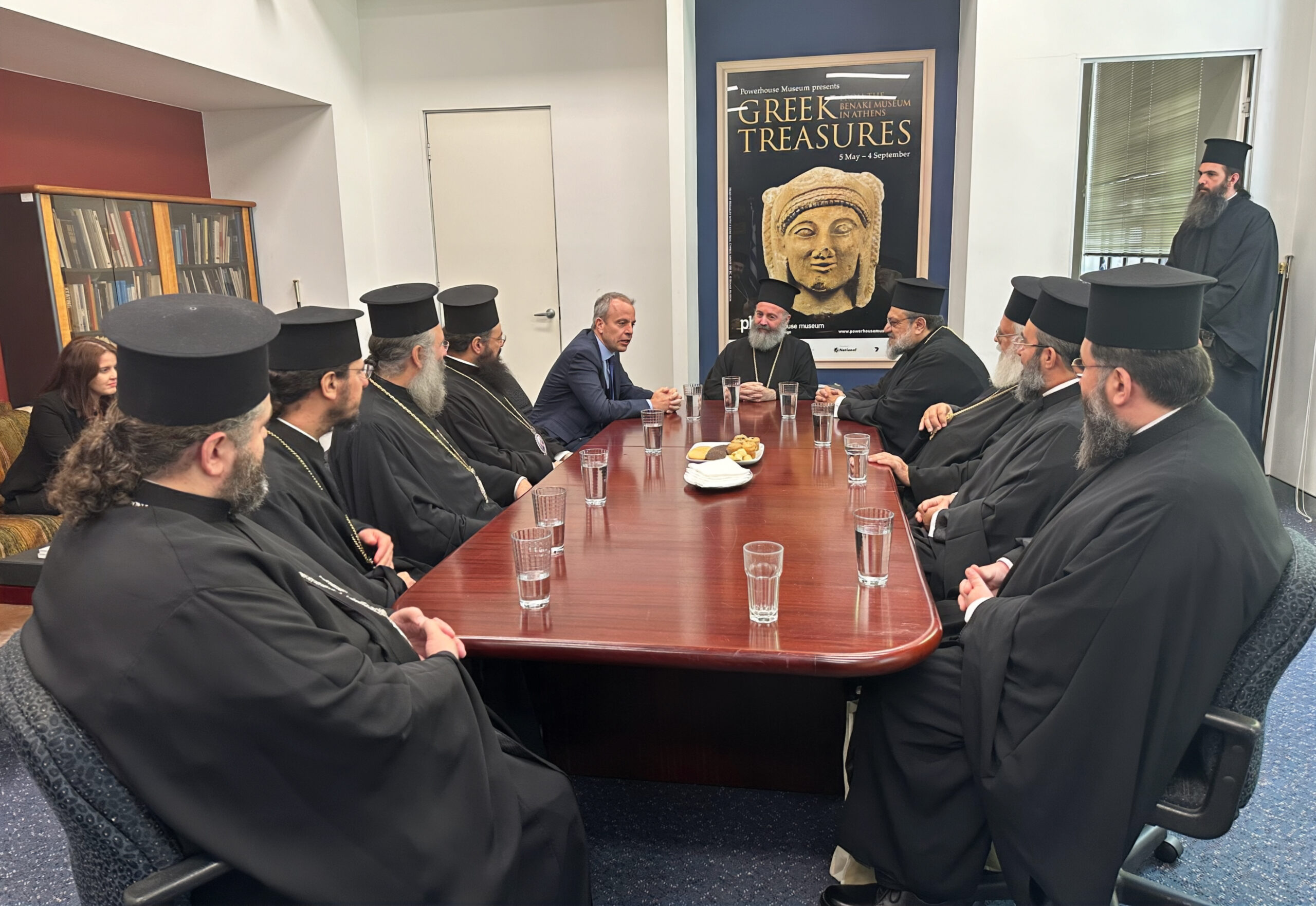 Εθιμοτυπική επίσκεψη στο Γενικό Προξενείο της Ελλάδος στο Σύδνεϋ πραγματοποίησαν την Πέμπτη, 21 Σεπτεμβρίου, οι Μητροπολίτες Μεσσηνίας κ. Χρυσόστομος, Ιλίου, Αχαρνών και Πετρουπόλεως κ. Αθηναγόρας, Ρεθύμνης και Αυλοποτάμου κ. Πρόδρομος και Πέτρας και Χερρονήσου κ. Γεράσιμος.