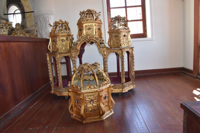 Εδώ και δυο χρόνια επέστρεψε και ο συντηρημένος ξύλινος Επιτάφιος μαζί με συντηρημένα επίσης ίδιας τεχνοτροπίας μικρότερα κουβούκλια, από τα εικονοστάσια και το δεσποτικό θρόνο του Ναού.