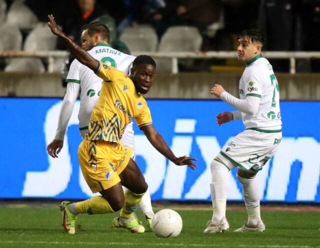 Οι πράσινοι είχαν ευκαιρία να ισοφαρίσουν, όμως, ένα πέναλτι που κέρδισε ο Λοΐζου και εκτέλεσε ο Μποτεάκ πήγε… στράφι, καθότι ο Γάλλος αστόχησε ή καλύτερα είδε τον Σκουφέτ να αποκρούει και να βάζει τέλος στο σερί του αντιπάλου του με τις εύστοχες εκτελέσεις σε όλη την καριέρα του. Έτσι λοιπόν ολοκληρώθηκε το ημίχρονο, με προβάδισμα ενός γκολ για τους γαλαζοκίτρινους.