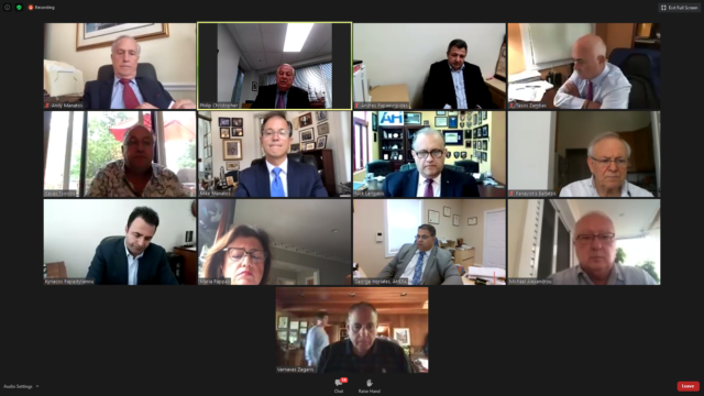 A video presentation included 23 U.S. senators and members of Congress noting the strength of relations between Cyprus and the U.S. and the need for a strong response to Turkish aggression in the region including the recent illegal actions in Varosha, direct violations of the UN Security Council resolutions. The distinguished U.S. lawmakers, many of whom are leaders in key committees, included: Rep. Chris Smith, Sen. Chris Van Hollen, Sen. Jack Reed, Rep. Rosa DeLauro, Sen. Chuck Schumer, Sen. Chris Coons, Sen. Ben Cardin, Sen. Ed Markey, Rep. David Cicilline, Sen. Jeanne Shaheen, Sen. Chris Murphy, Sen. Richard Durbin, Rep. Ted Deutch, Rep. Albio Sires, Rep. Lee Zeldin, Rep. Gus Bilirakis, Rep. Nicole Malliotakis, Rep. Carolyn Maloney, Rep. Frank Pallone, Rep. Charlie Crist, Rep. Chris Pappas, Rep. John Sarbanes, and Rep. Dina Titus.