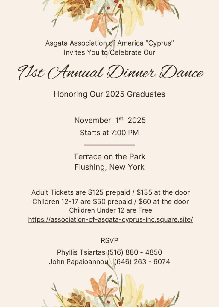 91st Annual Dinner Dance Asgata Association of America “Cyprus”