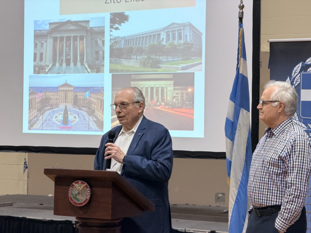 Following a traditional bakaliaros and skordalia dinner, prepared and donated by restauranteur Haralambos Pantelous and the Club Diner, AHEPA Past Supreme President George G. Horiates presented on “Philadelphia’s Role in Supporting the Greek Revolution”.