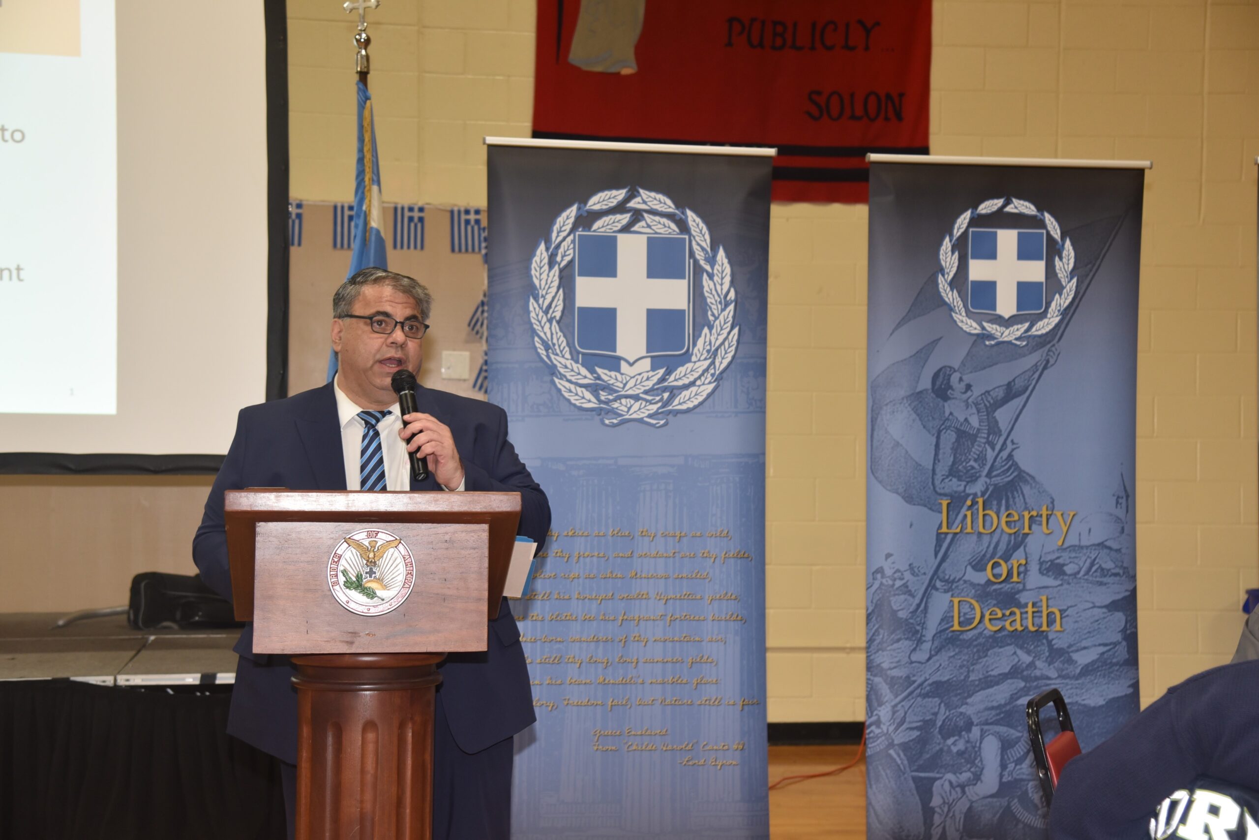 Following a traditional bakaliaros and skordalia dinner, prepared and donated by restauranteur Haralambos Pantelous and the Club Diner, AHEPA Past Supreme President George G. Horiates presented on “Philadelphia’s Role in Supporting the Greek Revolution”.