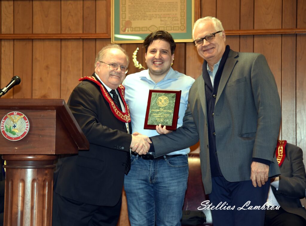 Special recognition was given to the district’s AHEPAN of the Year, Saint Thomas Parish Council President Anastasios Efstratiades for his support of the Journey to Greece Program. It was noted that past President Savas Tsivicos will host a fundraiser at the Graycliff as his testimonial on December 27, as he approaches the million -dollar mark. Also, the Hon. Harry Karapalides of the Thermopylae Chapter and President of the local Federation of Hellenic-American Societies of Philadelphia, was bestowed with the AHEPA Heroes medal. Finally, the chapter was presented its AHEPA Chapter of the Year plaque from last year by the Supreme President to a standing ovation.