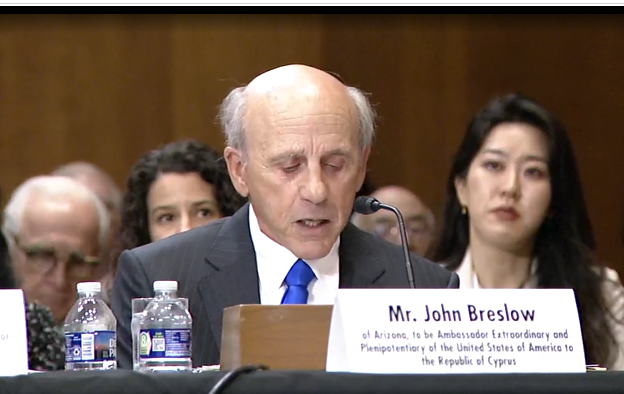 Ολοκληρώθηκε η ακρόαση του υποψήφιου Πρέσβη των ΗΠΑ στην Κυπριακή Δημοκρατία, Τζον Μπρέσλοου, ενώπιον της Επιτροπής Διεθνών Σχέσεων της Γερουσίας, με επίκεντρο τον ρόλο της Κύπρου και τις προτεραιότητες της αμερικανικής πολιτικής στην Ανατολική Μεσόγειο.