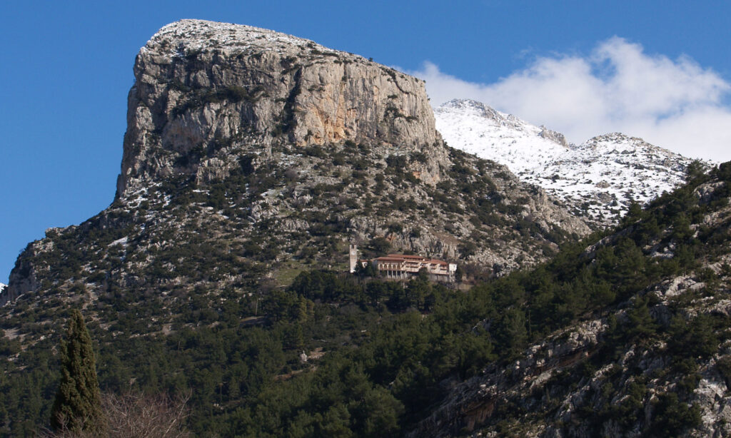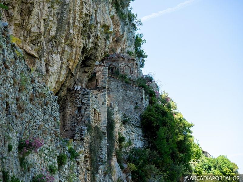 Η μονή ιδρύθηκε, σύμφωνα με την παράδοση τον 12ο αιώνα από μοναχούς που ζούσαν σε κοντινά ασκητήρια και αποτέλεσε καταφύγιο και ιατρείο για τους αγωνιστές της Επανάστασης του 1821. Η πρόσβαση στη μονή είναι εφικτή με όχημα μέχρι ένα σημείο, μετά απαιτείται ολιγόλεπτη πεζοπορία κάτω από το θεόρατο βράχο. Ολόγυρα η φύση οργιάζει και οι ήχοι από τα νερά του Λούσιου ποταμού και τα κελαϊδίσματα των πουλιών δημιουργούν στον επισκέπτη μια πρωτόγνωρη ηρεμία, σε ένα άγριο και συνάμα ειδυλλιακό τοπίο.