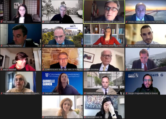 ΑΘΗΝΑ -Την πρόοδο που έχει επιτευχθεί στην εξωστρέφεια των ελληνικών πανεπιστημίων με έμφαση στη συνεργασία με αμερικανικά πανεπιστήμια, καθώς και τη δικτύωση των Ελλήνων ακαδημαϊκών στις ΗΠΑ, τόνισαν αξιωματούχοι της ελληνικής κυβέρνησης, εκπρόσωποι των πανεπιστημίων, φορέων αλλά και των πρεσβειών σε διαδικτυακή εκδήλωση που συνδιοργανώθηκε από τη Γενική Γραμματεία Ανώτατης Εκπαίδευσης του υπουργείου Παιδείας και Θρησκευμάτων και τη Γενική Γραμματεία Απόδημου Ελληνισμού και Δημόσιας Διπλωματίας του υπουργείου Εξωτερικών, με αφορμή τον εορτασμό της Παγκόσμιας Ημέρας Εκπαίδευσης, στις 24 Ιανουαρίου.