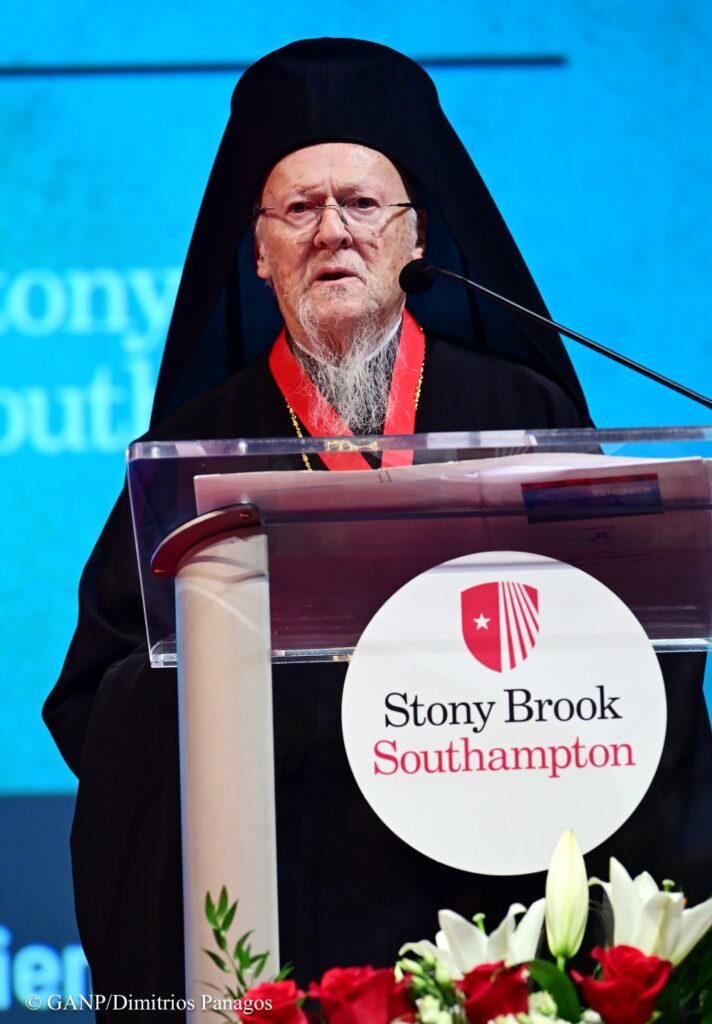 Stony Brook President Andrea Goldsmith praised Bartholomew as a leading voice who has illuminated not only the scientific but also the moral dimensions of the climate crisis. “We are so honored to celebrate him today with the university’s highest honor, the Stony Brook Council University Medal, in recognition of his tireless efforts, taking the lead among all religious leaders in his concern for the environment,” she said.