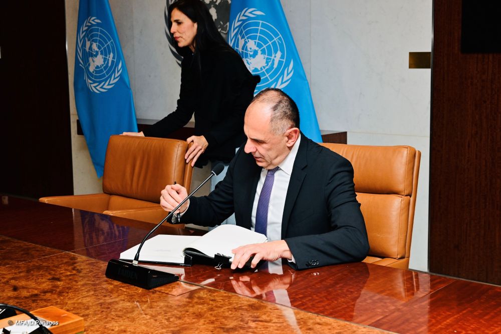 Foreign Minister George Gerapetritis met with United Nations Secretary-General Antonio Guterres at the headquarters of the international organisation in New York.