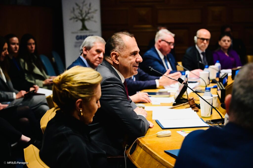 The opening speech was delivered by Foreign Minister George Gerapetritis, while greetings were delivered by the Permanent Representative of Greece to the United Nations, Ambassador Aglaia Balta, and Symeon Tsomokos, Founder and President of the Delphi Economic Forum.