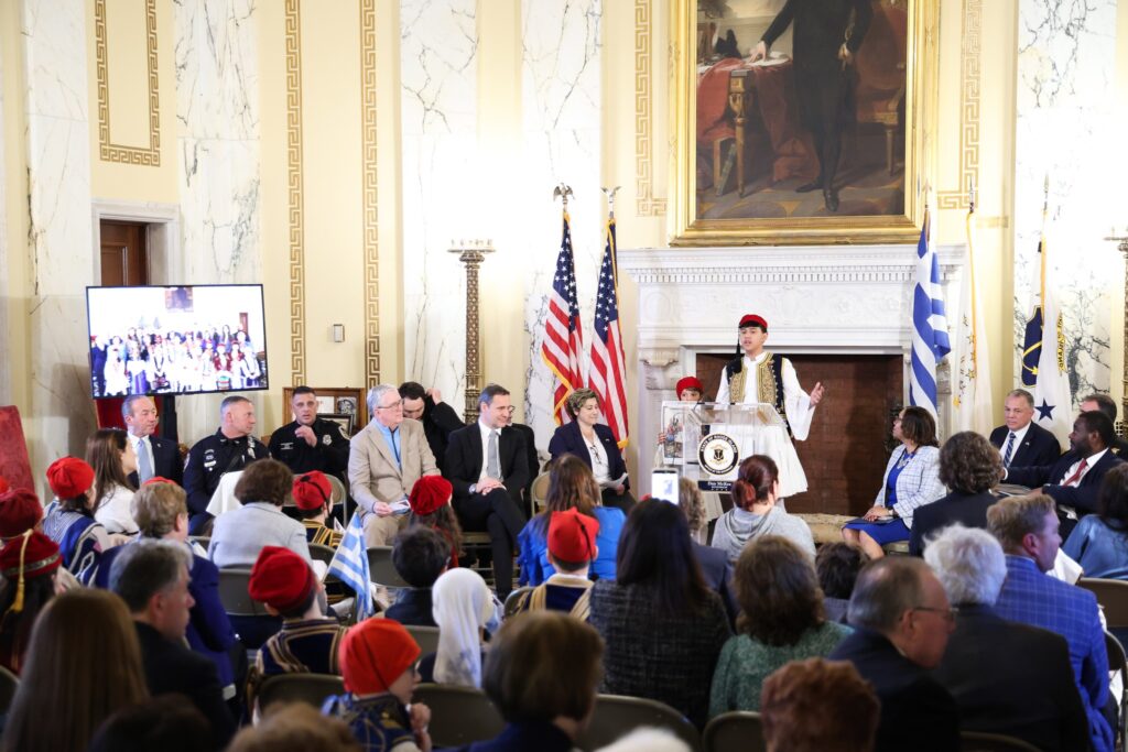 TV host – producer Dr. Yanna Darilis was honored as keynote speaker and praised the young children who recited many poems and songs and who are the future of Rhode Island’s Hellenic community. “I am deeply honored to have been invited to address the Rhode Island State Senate and the official program in the Governor’s Stateroom. I am grateful for the opportunity to speak before such distinguished elected officials, community leaders, and members of the Greek American community. The bonds between Greece and the United States are rooted in shared values, democracy, freedom, faith, and family, and strengthened by our strategic partnership in the Eastern Mediterranean. It was also a privilege to speak at the People’s House and address the Greek American community about the responsibility we all share as Greeks, especially the younger generation, to preserve our heritage and carry these values forward”, said Dr. Darilis.
