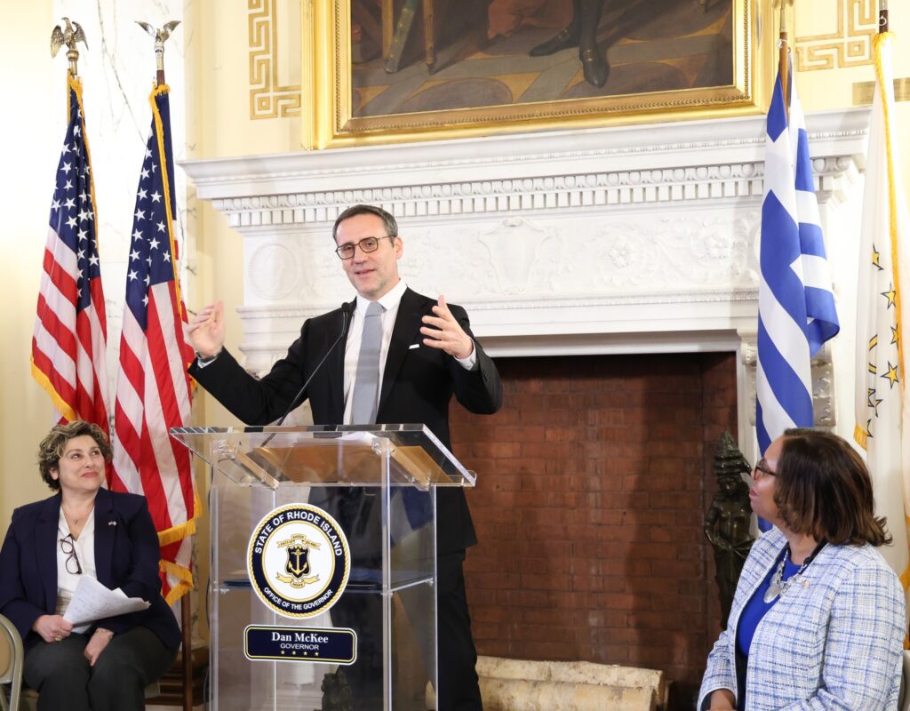 Rhode Island’s Governor Daniel McKee participated later in the evening at the official reception hosted by the Assumption Greek Orthodox Church Pawtucket where he addressed the entire Rhode Island Greek-American community and presented a State of Rhode Island proclamation recognizing the important contributions of the Hellenic community.