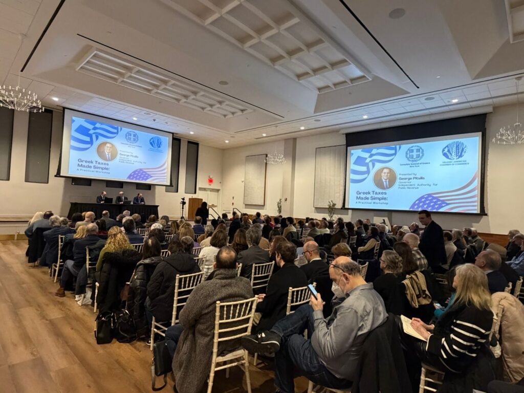 The Consulate General of Greece in New York, in collaboration with the Hellenic American Chamber of Commerce, hosted the well-attended informational event “Greek Taxes Made Simple”, attracting a large and engaged audience from the Greek-American community, on December 10.
