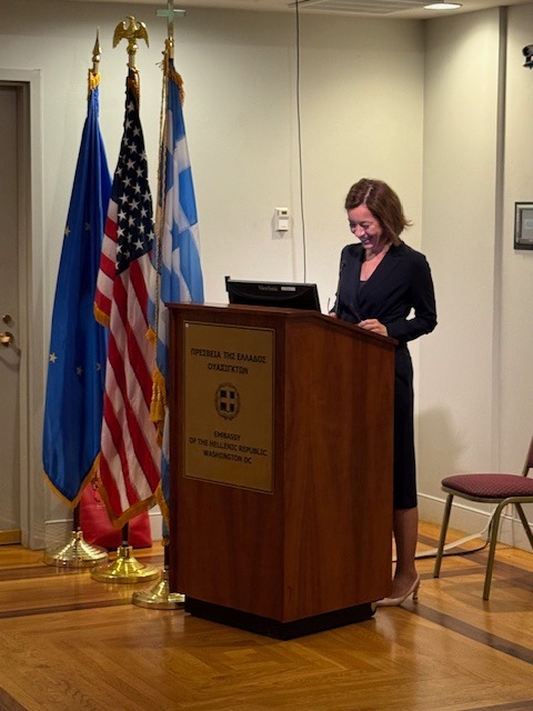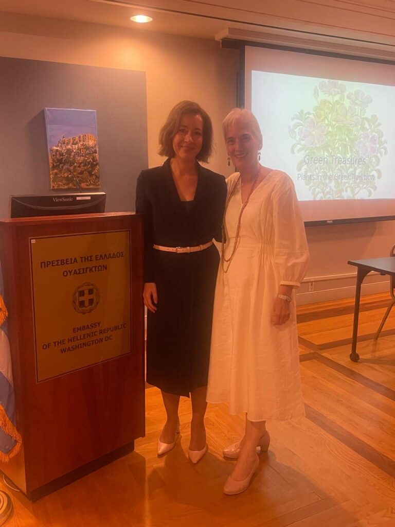 Dr. Yota Batsaki, Executive Director of Dumbarton Oaks—a Harvard University research institute, museum, and historic garden in Washington, DC—delivered a captivating lecture titled “Green Treasures: Plants in the Greek Tradition” at the Embassy of Greece on October 1.