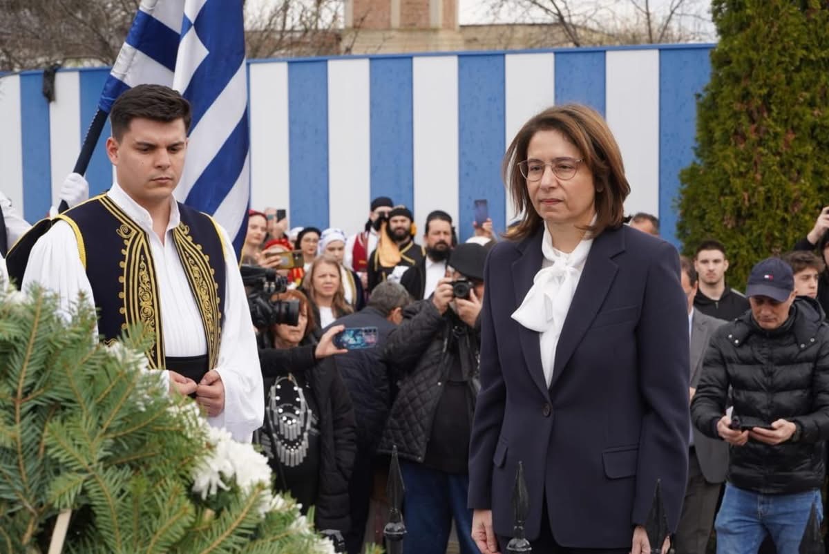 Στεφάνι στο μνημείο του Ιερού Λόχου στο Δραγατσάνι κατέθεσε η Πρέσβης της Ελλάδας στη Ρουμανία, Λιλή Ευαγγελία Γραμματίκα, στο πλαίσιο των εκδηλώσεων για τον εορτασμό της Εθνικής Επετείου, τιμώντας τη μνήμη των πεσόντων Ιερολοχιτών και τη θυσία τους για την ελευθερία.