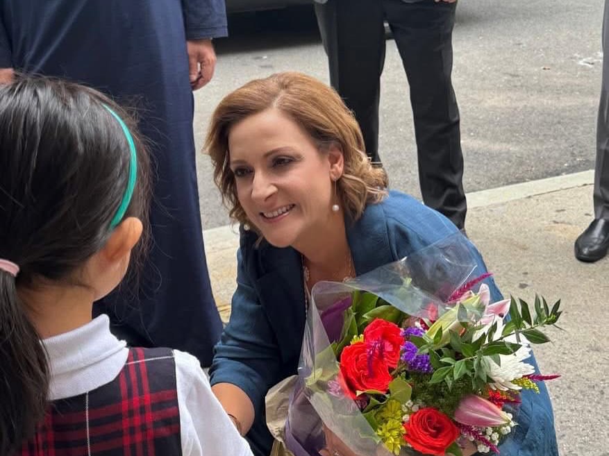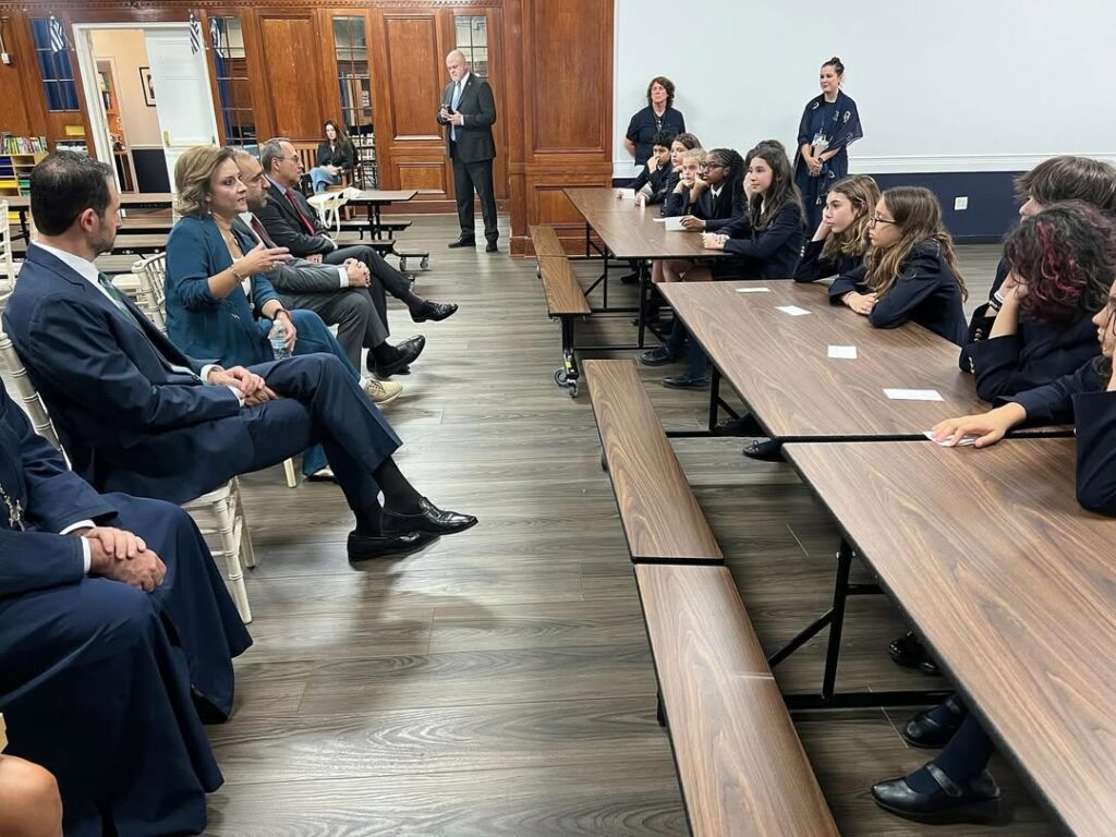 Ο προϊστάμενος του Καθεδρικού π. Χρυσόστομος Γκίλμπερτ και η διευθύντρια, Μερόπη Κυριάκου, η οποία είναι κυπριακής καταγωγής, ενημέρωσαν την κα Καρσερά για το δυναμικό και την πρόοδο του Σχολείου, ενώ οι μικρότεροι μαθητές παρουσίασαν μέρος της γιορτής που ετοιμάζουν για την εθνική επέτειο της 28ης Οκτωβρίου με τραγούδια και ποιήματα. Παρόντες ήταν επίσης ο αντιπρόεδρος του Συμβουλίου του Καθεδρικού Τεντ Κακογιάννης, επίσης κυπριακής καταγωγής, και η διευθύντρια του Απογευματινού Ελληνικού Σχολείου Ρούλα Τρικουνάκη.