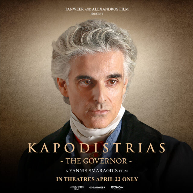 “Kapodistrias” (The Governor), a historical drama based on true events and the fifth-highest grossing Greek film of all time as reported by the Greek Film Center, will arrive in U.S. theatres nationwide for a special one-night-only theatrical event on Wednesday, April 22, from international distributor Tanweer, and Fathom Entertainment, the leading specialty distributor of content to theatrical partners worldwide.