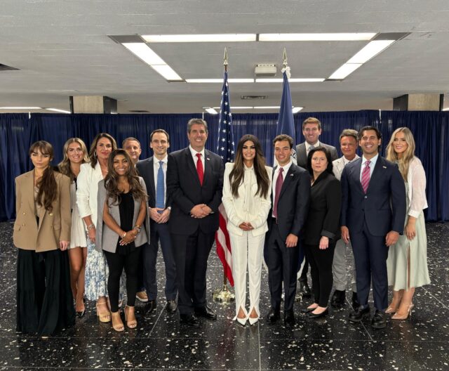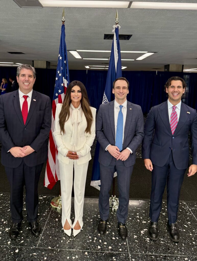 The ceremony at the State Department was attended by administration officials, political figures, and family members. Among those in attendance were Michael Rigas, the assistant secretary of state for management and resources; Michael Kratsios, Director of the White House Office of Science and Technology Policy; Christos Marafatsos, president of the conservative Greek American group “Greeks for Trump”; and Ms. Guilfoyle’s son.