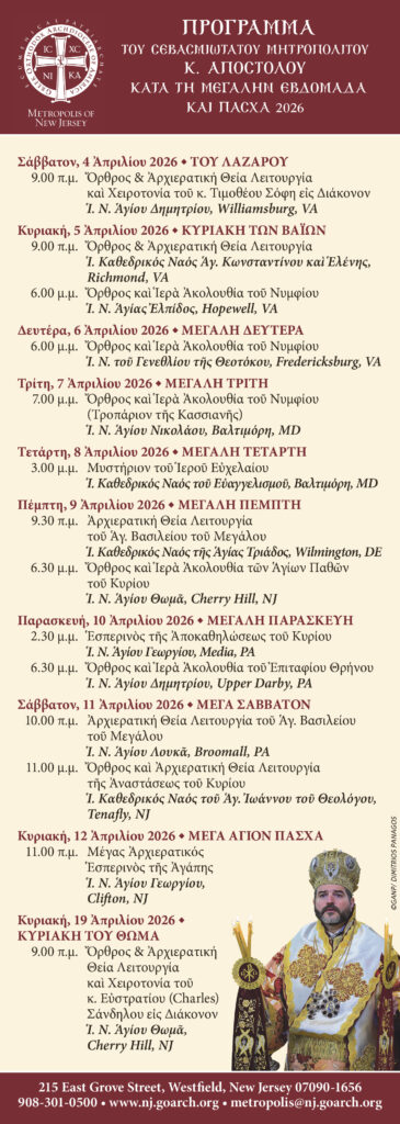 Liturgical Schedule – Holy Week and Pascha 2026 – Archbishop Elpidophoros of America
