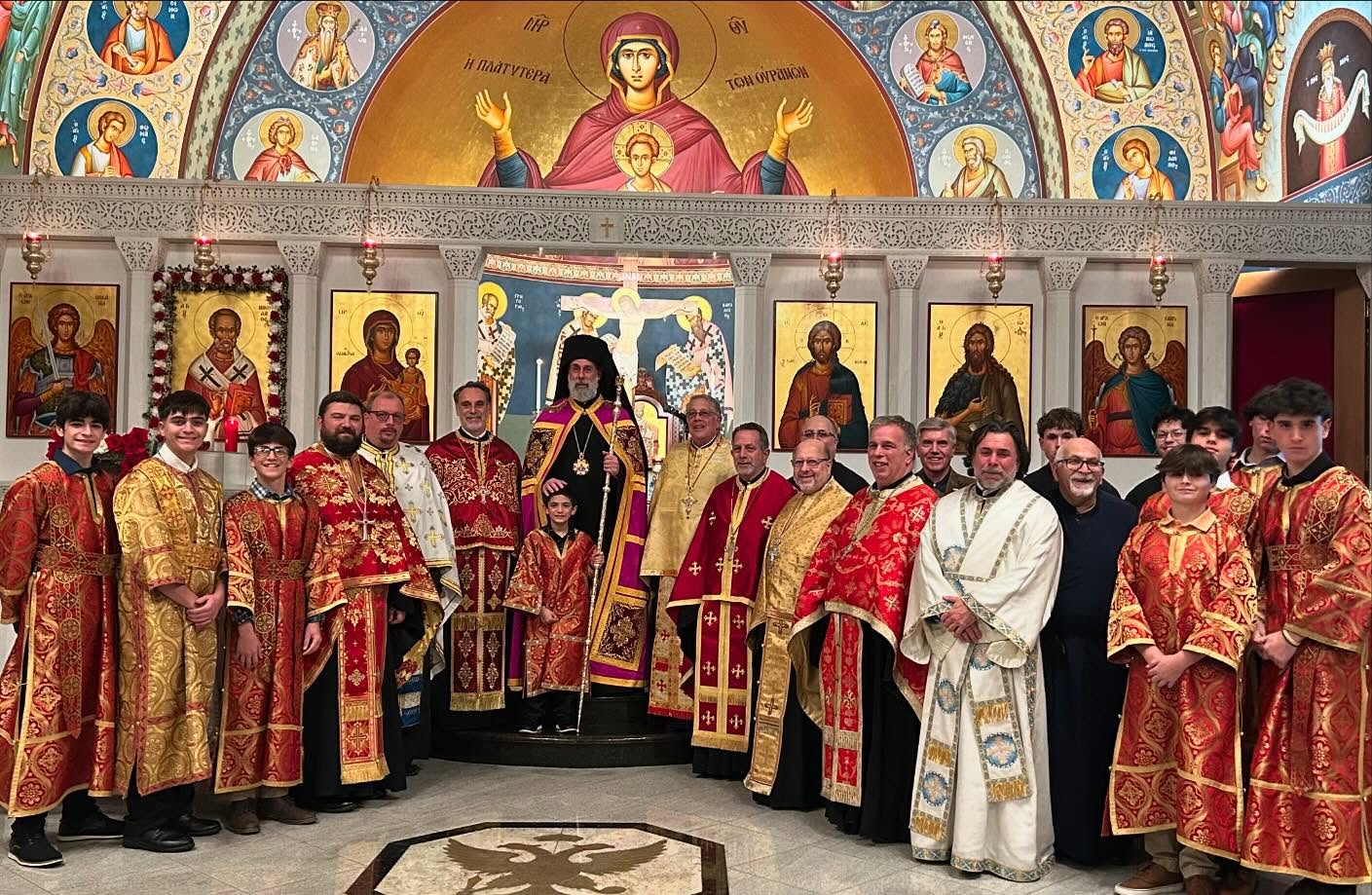 Κατά τον Μέγα Αρχιερατικό Εσπερινό μετ’ Αρτοκλασίας το βράδυ της Πέμπτης 5 Δεκεμβρίου χοροστάτησε ο Επίσκοπος Διοκλείας κ. Νεκτάριος, Πρωτοσύγκελλος της Ιεράς Αρχιεπισκοπής Αμερικής, βοηθούμενος από τον προϊστάμενο της κοινότητας π. Δημήτριο Καζάκη, τον διάκονο Γρηγόριο Γουνάρδη, τον υποδιάκονο Παύλο Μποζίκη και πλειάδα ιερέων από γειτονικές ενορίες.