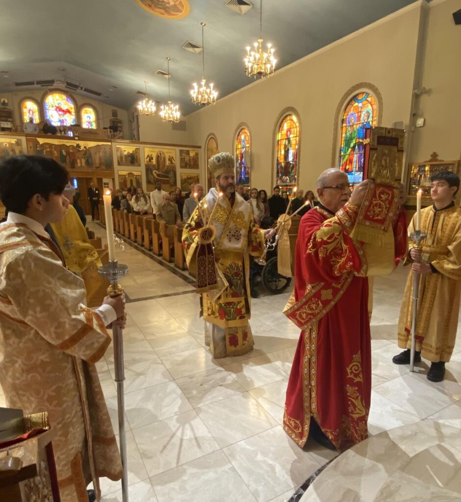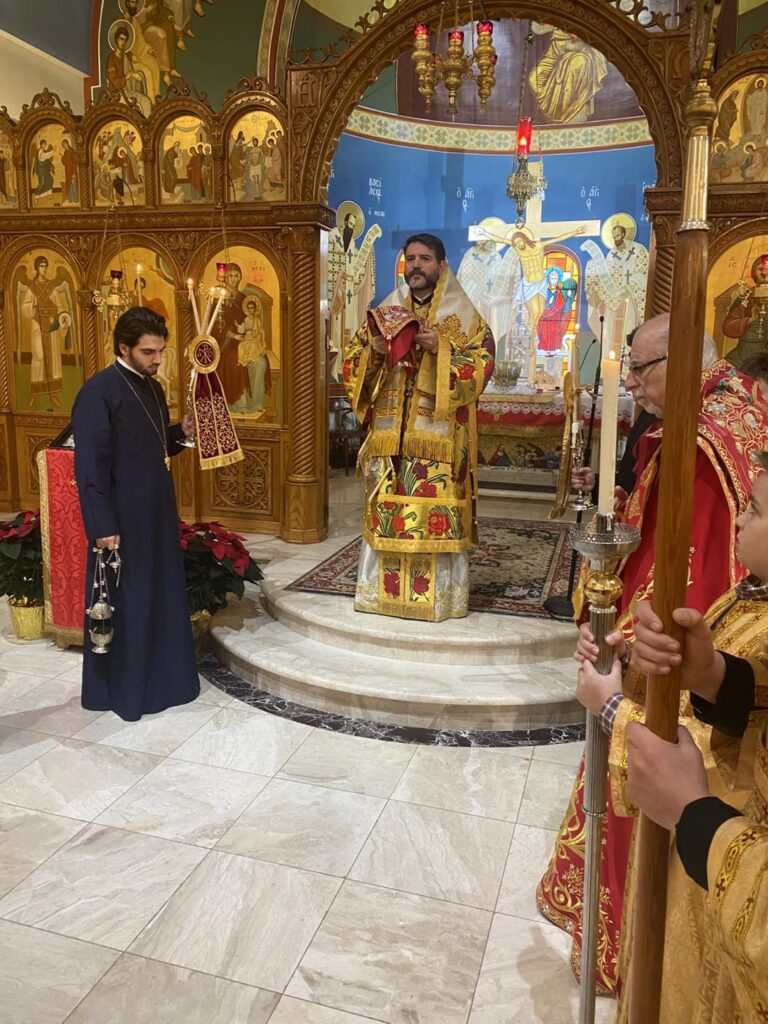 His Eminence Metropolitan Apostolos of New Jersey presided over the Orthros and the Divine Liturgy of Christmas at St. George Greek Orthodox Church in Piscataway, NJ, on December 25. The Very Rev. Archimandrite Fr. Nektarios Cottros, proistamenos of the parish, welcomed His Eminence together with members of the Parish Council. Also serving was Rev. Dn. Emmanuel Tsarnas, who celebrated his name day.