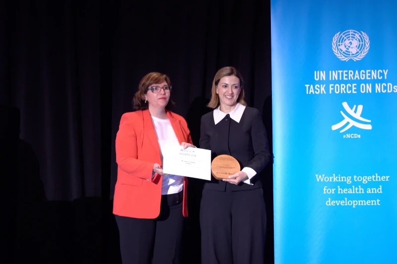 Για την εξαιρετική της συμβολή στην πρόληψη των χρόνιων νοσημάτων και την καταπολέμηση της παιδικής παχυσαρκίας βραβεύτηκε η Ελλάδα από τον ΟΗΕ και τον Παγκόσμιο Οργανισμό Υγείας. Το βραβείο παρέλαβε σε ειδική τελετή στη Νέα Υόρκη η αναπληρώτρια Υπουργός Υγείας Ειρήνη Αγαπηδάκη.