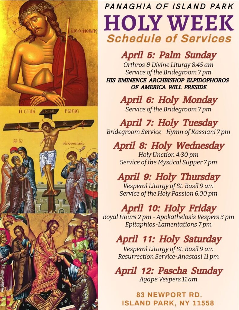 Panaghia of Island Park – Holy Week Schedule of Services