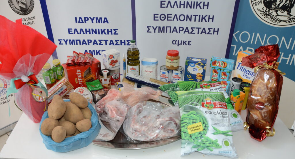 Δέματα με βασικά είδη διατροφής — κρέας (αρνί), ζυμαρικά, ρύζι, ζάχαρη, αλεύρι, κριθαράκι, ελαιόλαδο, γάλα και άλλα πρώτης ανάγκης — παρέλαβαν άνεργες οικογένειες και μονογονεϊκές οικογένειες, καθώς και οι ενορίες Αγίου Αθανασίου Θησείου και Αγίας Αικατερίνης Πετραλώνων, η Ένωση Μικρασιατών, το ΤΑΣΕΗ (Ταμείο Αλληλοβοηθείας Σωματείου Ελλήνων Ηθοποιών) και το «Εργαστήρι» (Κέντρο για άτομα με ειδικές ανάγκες).