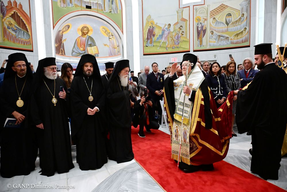His All-Holiness was accompanied by Archbishop Elpidophoros, Metropolitan Theodoritos of Laodicea, Metropolitan Maximos of Sylivria, Grand Ecclesiarch Aetios, and Patriarchal Deacon Barnabas. Upon arrival at the church, he was warmly welcomed by Archiepiscopal Vicar Fr. Andreas Vithoulkas, along with “Friends of St. Nicholas” President, Michael Psaros, clergy and faithful from the communities of the Direct Archdiocesan District (DAD), as well as hierarchs of the Eparchial Synod.