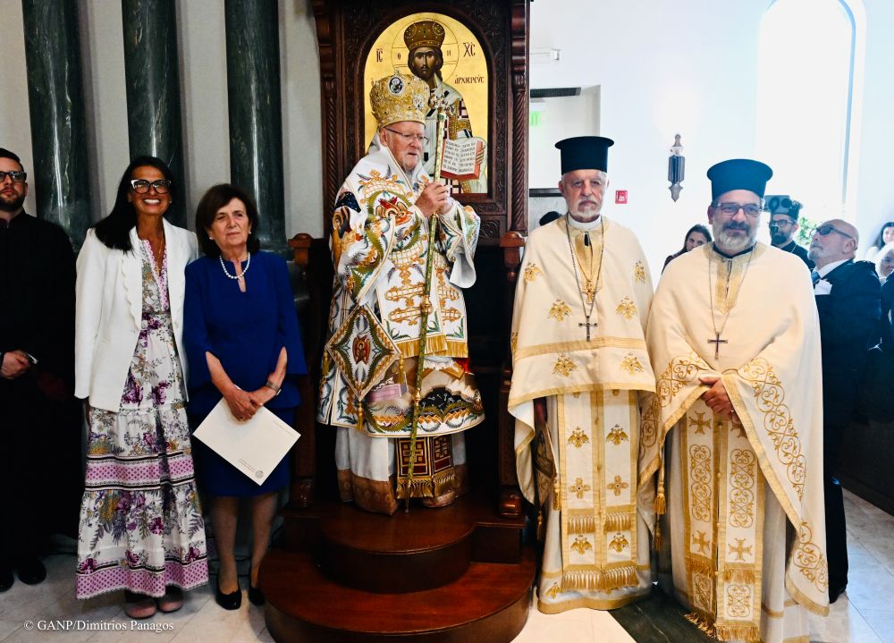 Ο Παναγιώτατος συνεχάρη εγκαρδίως τον εμφανώς συγκινημένο κληρικό της Ιεράς Αρχιεπισκοπής Αμερικής και πλέον Μέγα Πρωτοπρεσβύτερο π. Αλέξανδρο, καθώς και την Πρεσβυτέρα Ξανθίππη και όλα τα μέλη της οικογενείας του.