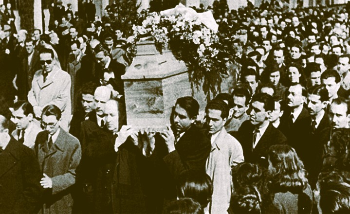 Τελειώνει η λειτουργία και φωνάζει ο Σικελιανός: «Ελάτε κοντά οι νέοι! Εσάς σκεπτόταν ο Παλαμάς όταν έγραφε!». Και τότε, παλληκάρια από το πουθενά ξεπροβάλλουν και παραμερίζοντας τους επαγγελματίες νεκροπομπούς, παίρνουν στους ώμους τους το φέρετρο.