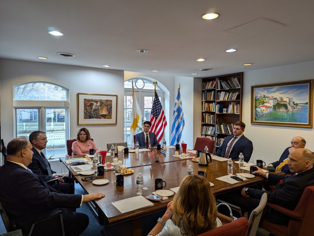 The group included State Senator Leonidas Raptakis (D-RI), State Representative Alex Skarlatos (R-OR), State Senator Stephan Pappas (R-WY), State Representative Nicole Klarides-Ditria (R-CT), State Assemblyman John Lemondes (R-NY), and former State Representative Themis Klarides (R-CT), and were received by AHI President Nick Larigakis, AHI Executive Director Zac Cotronakis, and AHI Legislative Director Alexander Christofor.