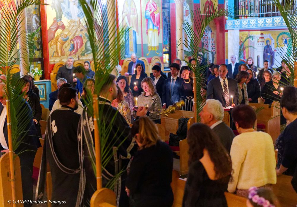 Κατά την πρώτη Ακολουθία του Νυμφίου (Όρθρος της Μεγάλης Δευτέρας) χοροστάτησε ο Αρχιεπίσκοπος Αμερικής Ελπιδοφόρος, βοηθούμενος από τον προϊστάμενο της κοινότητας π. Γεώργιο Καζούλη, τον Αρχιδιάκονο Διονύσιο Παπίρη και τον Διάκονο Ιερεμία Μανδώρα.