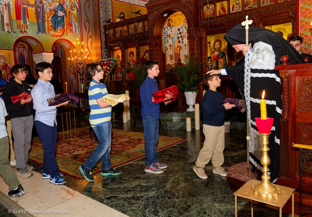 Στην ακολουθία χοροστάτησε ο Αρχιεπίσκοπος Αμερικής Ελπιδοφόρος βοηθούμενος από τον π. Νικόλαο Δασσούρα, προϊστάμενο της κοινότητας, τον Αρχιδιάκονο Διονύσιο Παπίρη και τον Διάκονο Ιερεμία Μανδώρα.