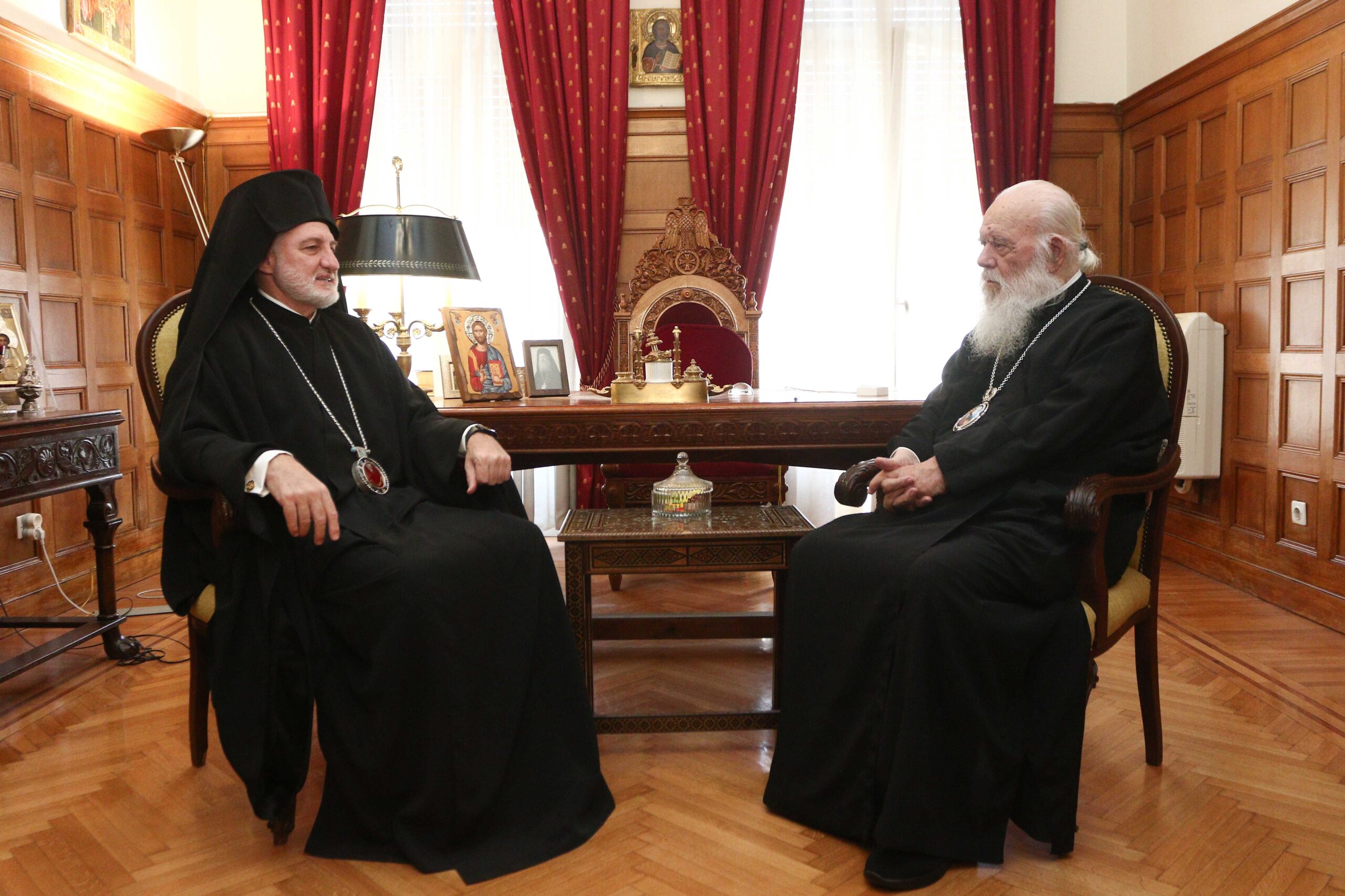 Την ιδιαίτερη χαρά του εξέφρασε ο Μακαριώτατος Αρχιεπίσκοπος Αθηνών και πάσης Ελλάδος κ. Ιερώνυμος, υποδεχόμενος στην Αρχιεπισκοπή Αθηνών, τον Σεβασμιώτατο Αρχιεπίσκοπο Αμερικής κ. Ελπιδοφόρο.