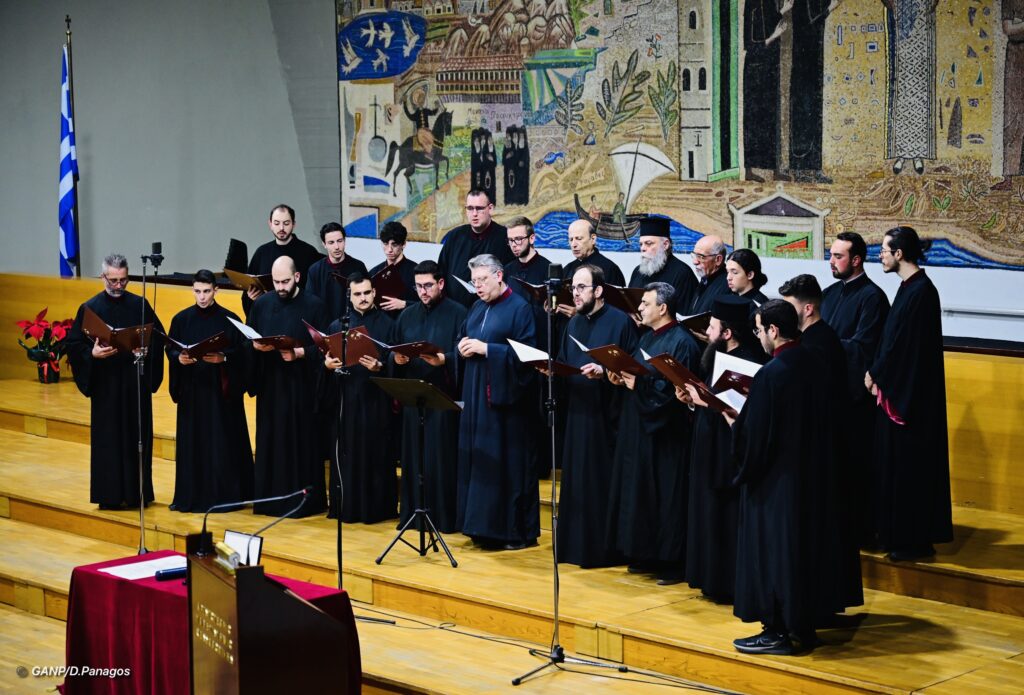 Ακολούθησε πολυχρονισμός του Αρχιεπισκόπου πρ. Αμερικής κ. Δημητρίου από την χορωδία της Θεολογικής Σχολής «Τρεις Ιεράρχες» και μουσικό μέρος με βυζαντινούς ύμνους .