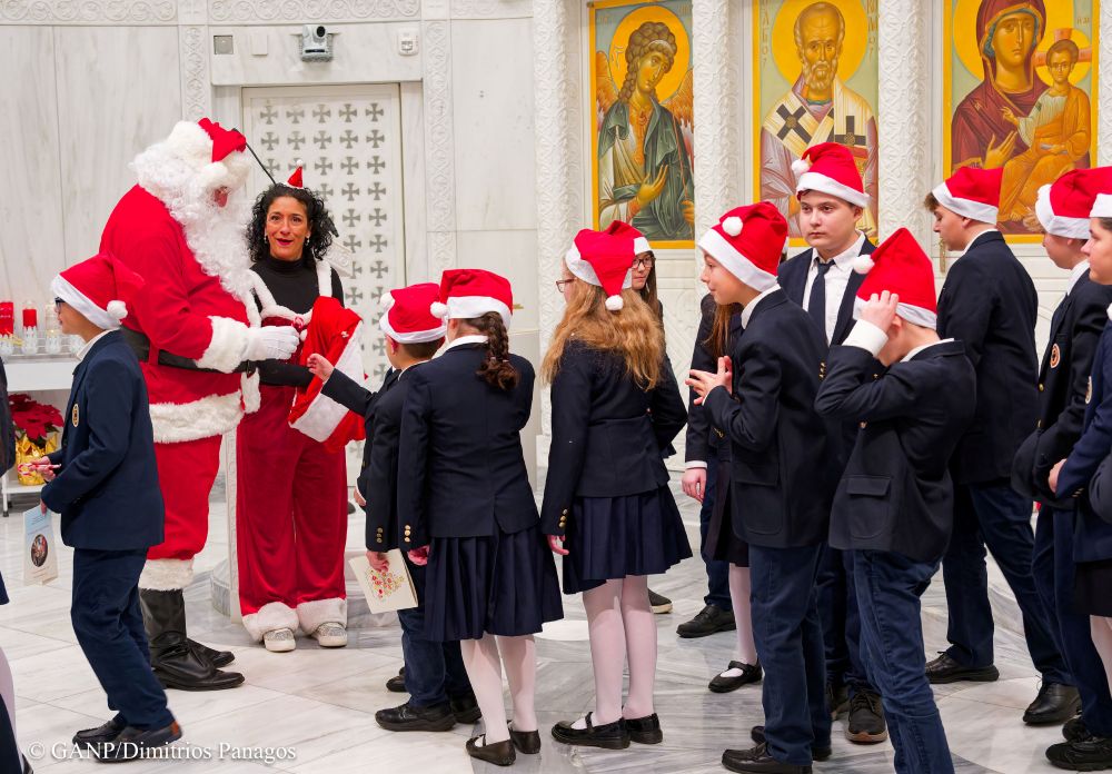 Τα παιδιά έψαλαν Κάλαντα από όλη την Ελλάδα και τραγούδησαν κλασικά χριστουγεννιάτικα τραγούδια υπό τη διεύθυνση του μουσικοδιδασκάλου τους και χοράρχη Ελευθέριου Ελευθεριάδη και με τη συνοδεία της Αρετής Γιοβάνου στο πιάνο και δέχθηκαν τις ευχές του Αρχιεπισκόπου Ελπιδοφόρου.