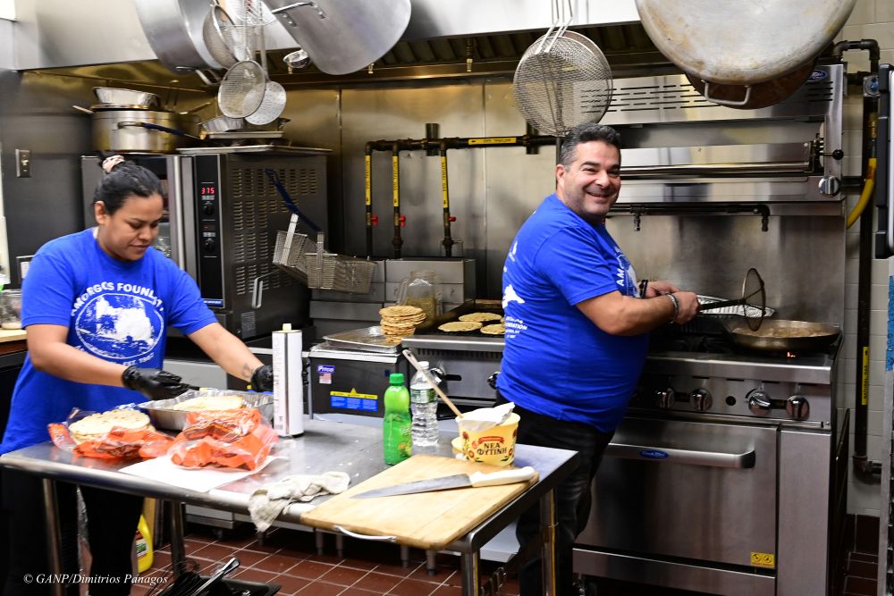 Η ηγεσία του Αμοργιανού Ιδρύματος που αγκαλιάζει και τους νησιώτες των Μικρών Κυκλάδων, της Δονούσας, της Σχοινούσας, της Ηράκλειας και των Κουφονησίων, ο πρόεδρος Νικήτας Θεολογίτης και ο επίτιμος πρόεδρος Νίκος Γαβαλάς, ήταν εκεί για την προετοιμασία της γιορτής, φορώντας μάλιστα και τις ποδιές τους για να ετοιμάσουν παραδοσιακά εδέσματα, μεταξύ των οποίων η αμοργιανή τηγανιά.